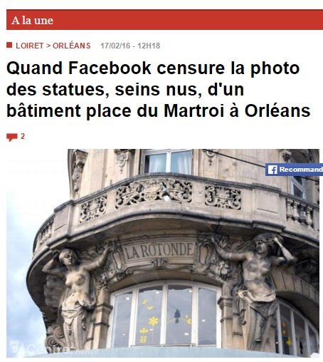 Quand Facebook censure la photo des statues, seins nus, d"un bâtiment place du Martroi à Orléans