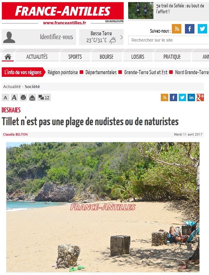 Source : http://www.guadeloupe.franceantilles.fr/actualite/societe/tillet-n-est-pas-une-plage-de-nudistes-ou-de-naturistes-424376.php?pc=1#rub_commentaires.